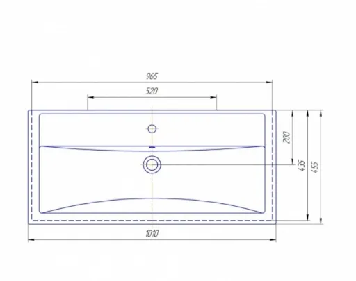 - Размер ШхГ: 1001х455 мм. Одно отверстие под смеситель. Материал: керамика.