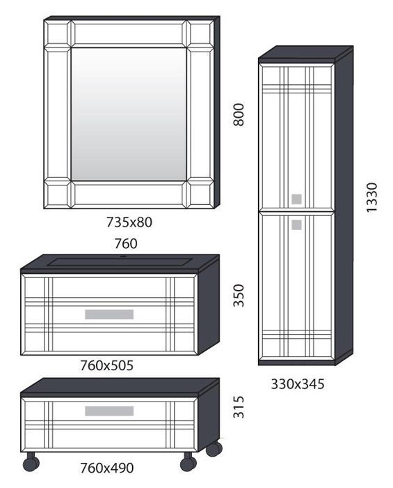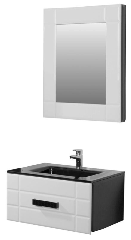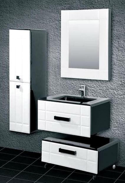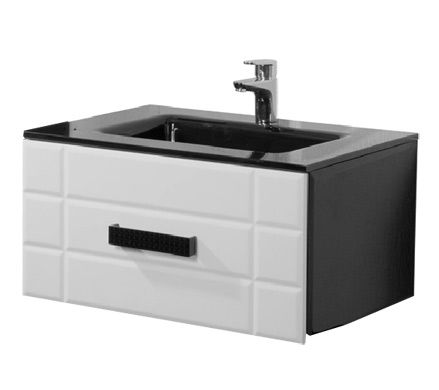Мягкие грани фасадов создают необычный эффект объема. Классическая черно-белая гамма дополняется сияющим глянцевым блеском и игрой света на глубоких гранях коллекции. В тумбе применена выдвижная система "Innotech Hettich" (Германия). Стеклянный умывальник добавляет композиции глубины.
