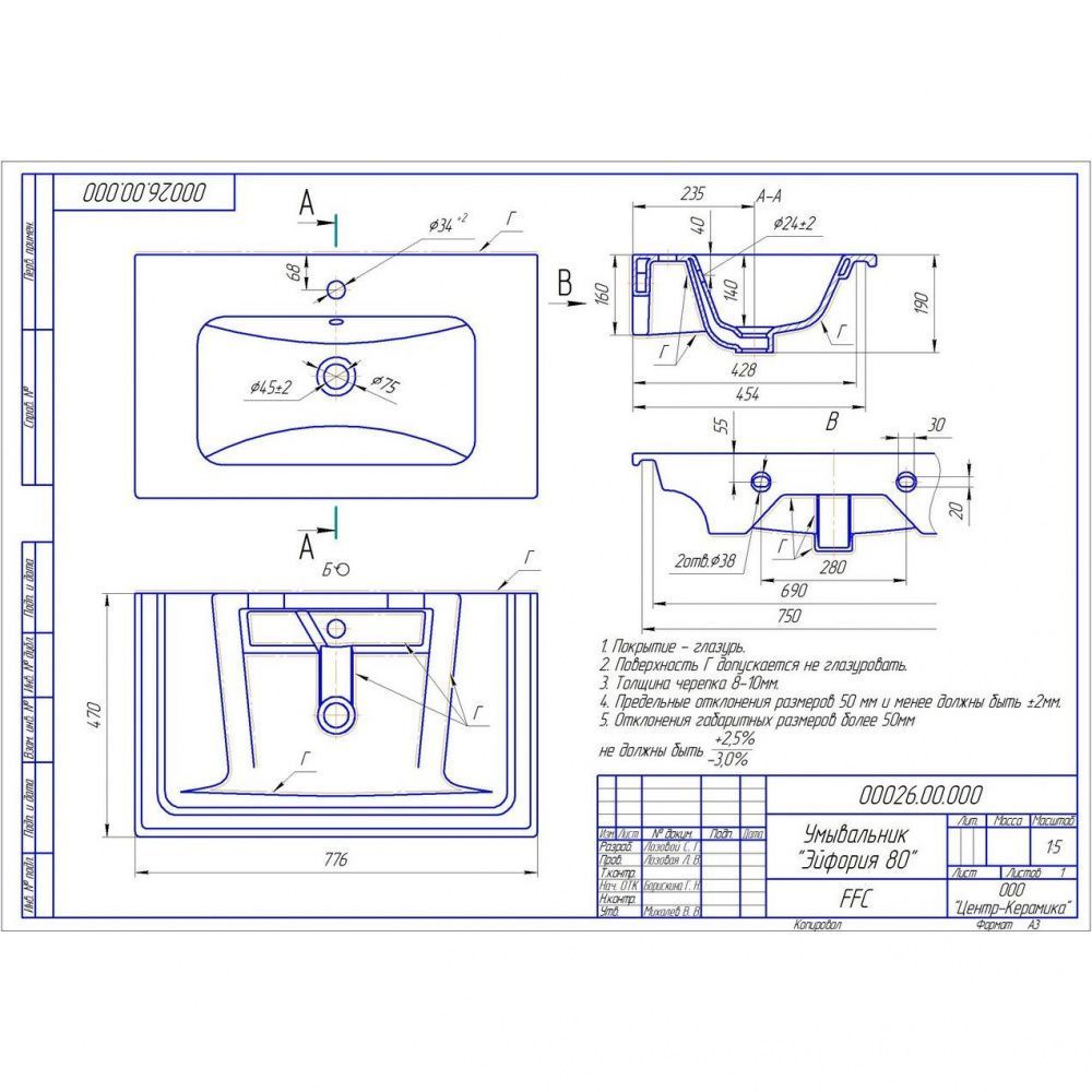 Раковина OWL 1975 Euphoria 640177 80 белый