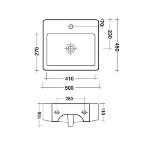 Раковина Ceramica Ala Taken TK307 TAKWB450/Platin 50 см белая/платина