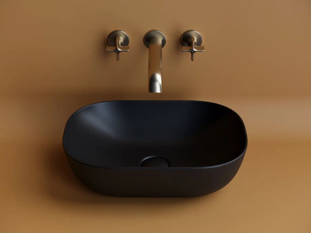 Умывальник чаша накладная прямоугольная (цвет Чёрный Матовый) Element 455*325*135мм