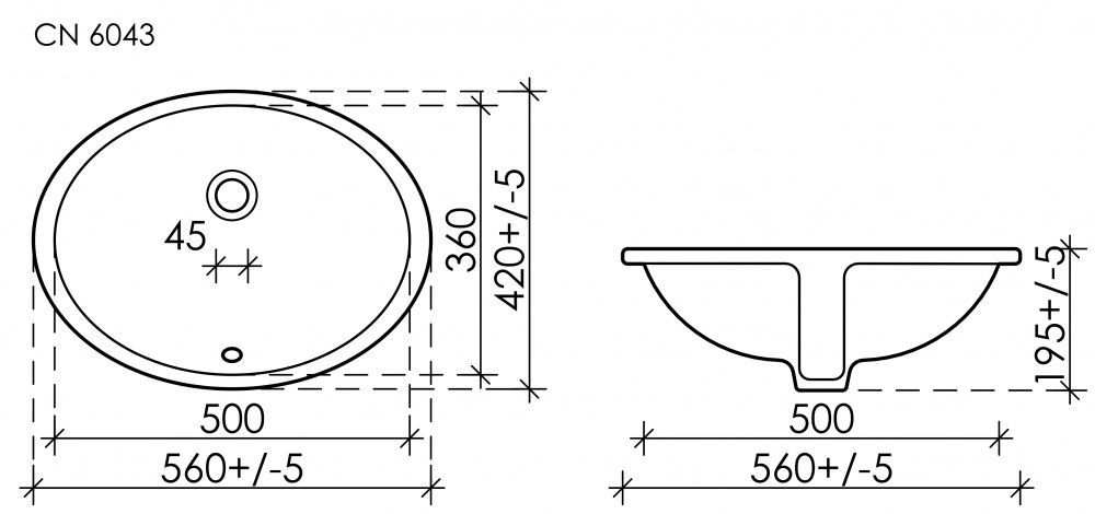 Умывальник овальный встраиваемый под столешницу Element 560*420*195мм, , с крепежом и шаблоном для установки