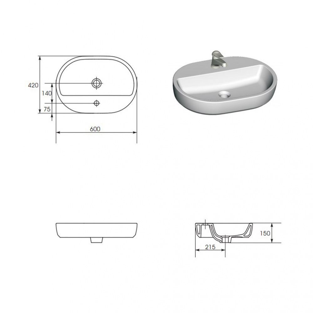 - Раковина встраиваемая: CASPIA 60 OVAL 1 отверстие, овальная, белый