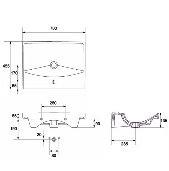 - Раковина встраиваемая: CITY 70, 1 отвертие, белый