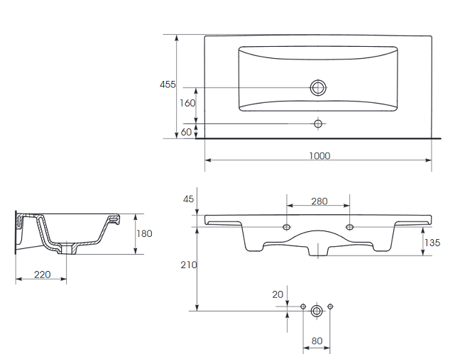 - Раковина встраиваемая: COMO 100 1 отверстие, белый
