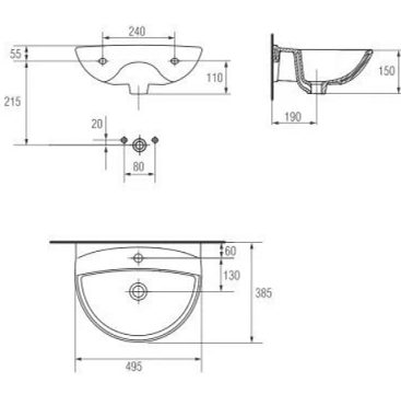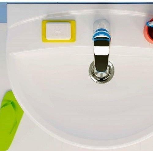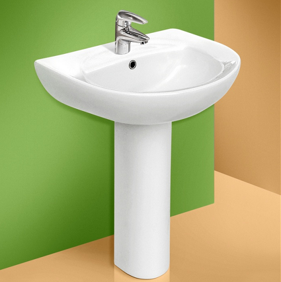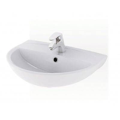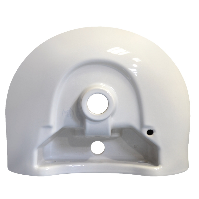 - Белая керамическая подвесная раковина, отверстие для смесителя расположено по центру