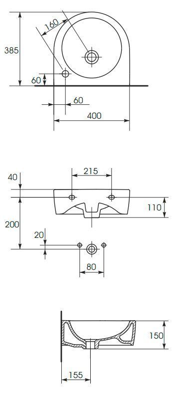 Рукомойник подвесной Cersanit Nano белый, с отверстием под смеситель справа, с отверстием для перелива. Установка с декоративным сифоном или на столешницу.