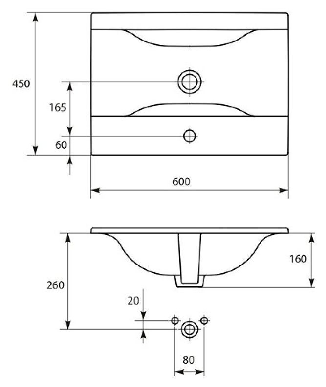 -Раковина встраиваемая: Ontario 60, 1 отверстие, белый