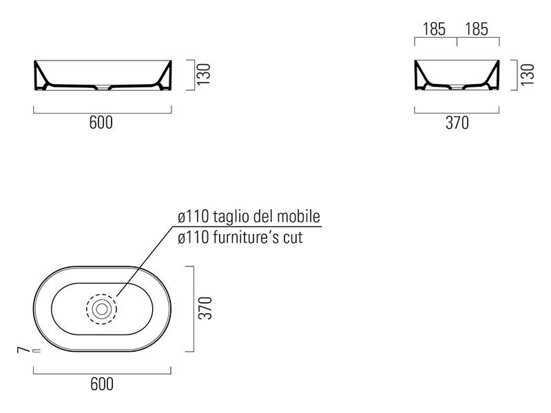 - GSI (Kube X) Раковина накладная 600×370 мм, без перелива, без отверстия под смеситель, белый глянцевый