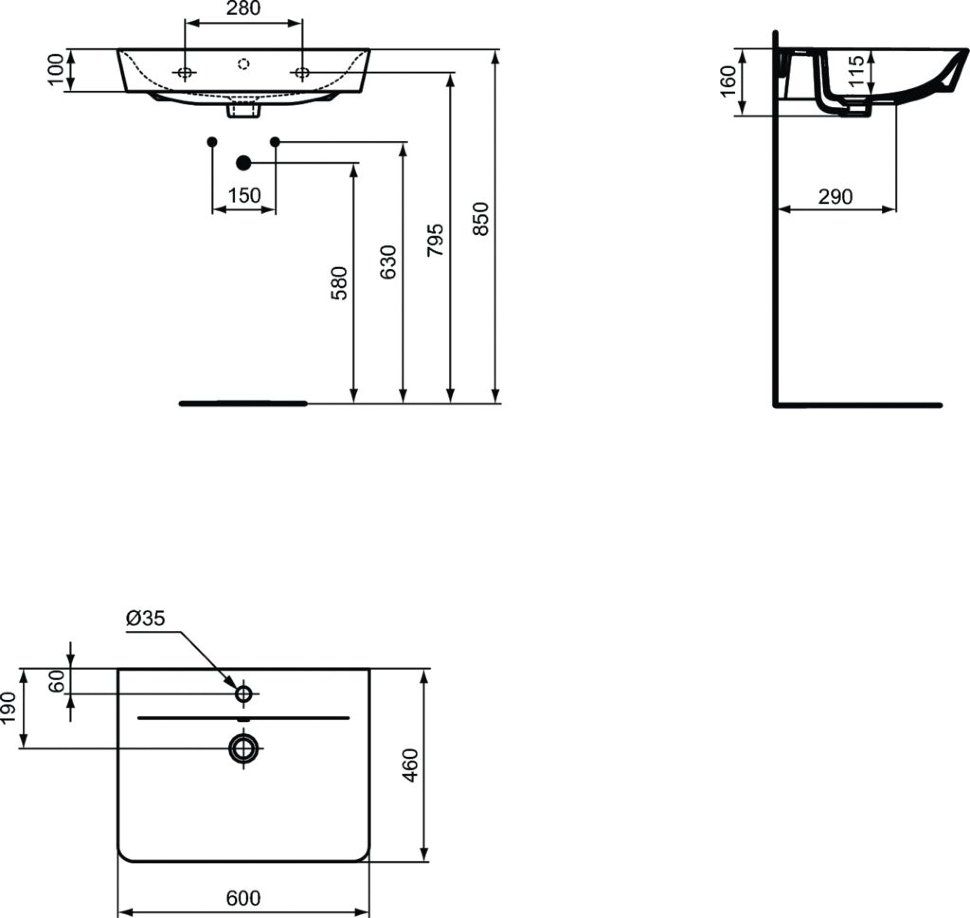 Раковина Ideal Standard Connect Air E0298V3 60 черный матовый