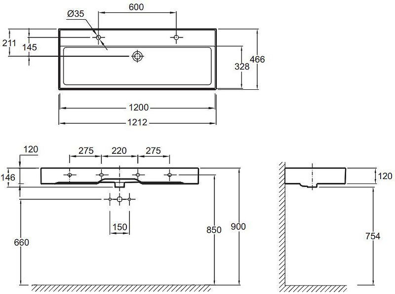• Расположение смесителя посередине