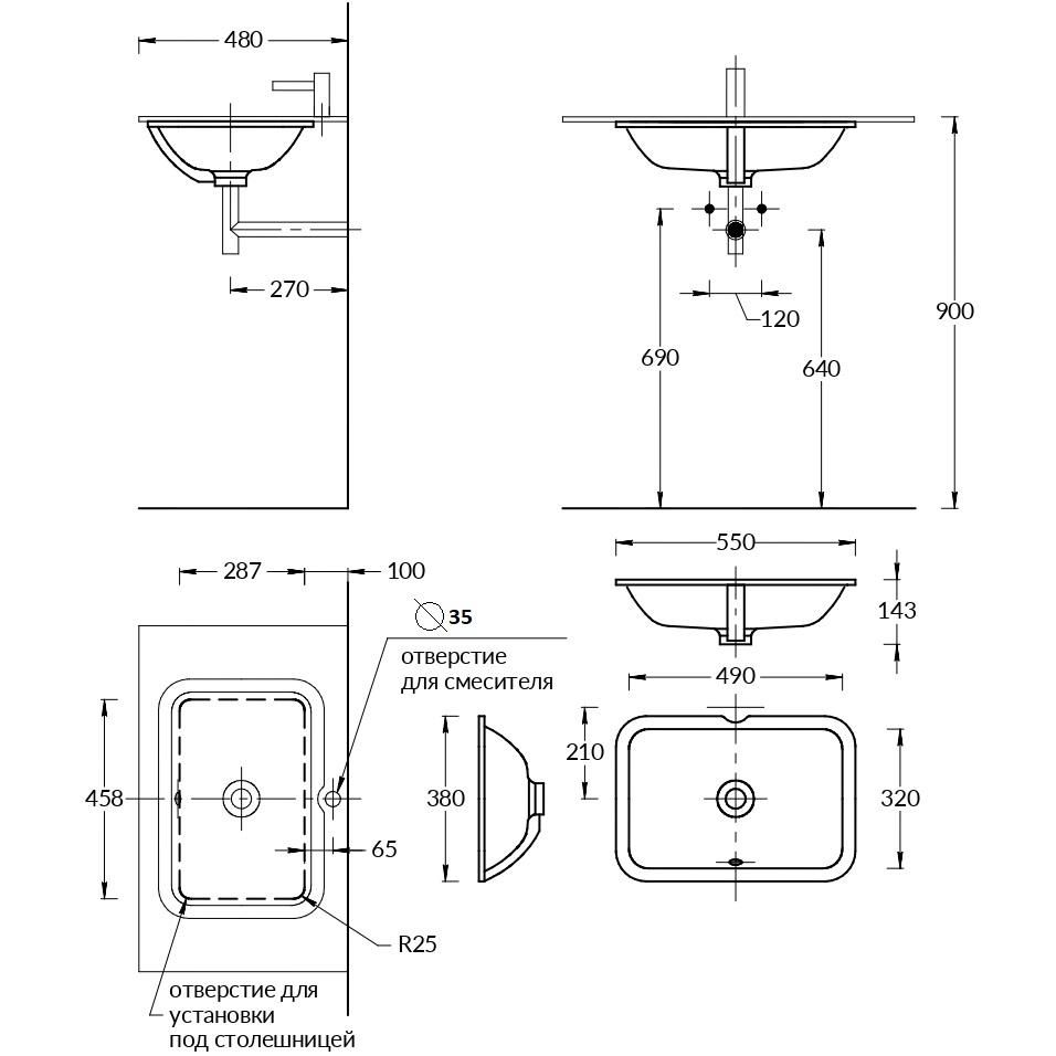 Раковина Kerama Marazzi Plaza PLR.wbu.55 55х38 встраиваемая снизу