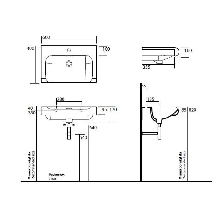 - KERASAN Inka Project Раковина INKA 60x40x35,5 с 1 отверстием под смеситель,цвет nero lucido