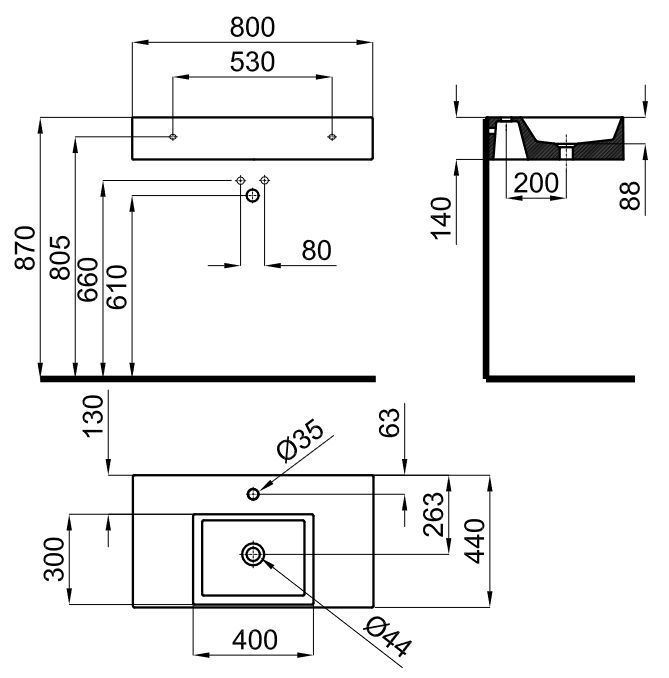 - Раковина 80 см подвесная с чашей по центру, слив и крепления 100041225.