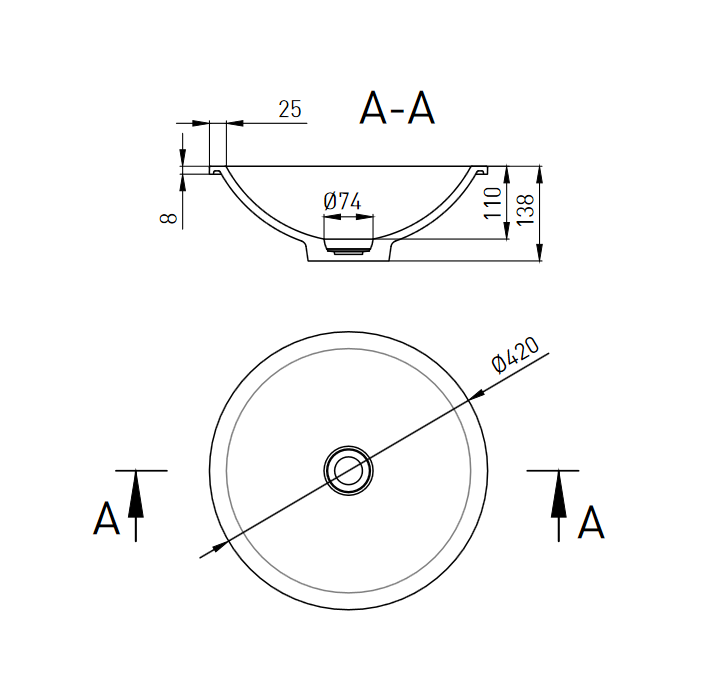 - Узкий бортик может быть скрытым под столешницей, либо выступать над поверхностью столешницы, образуя чёткий контур раковины.
