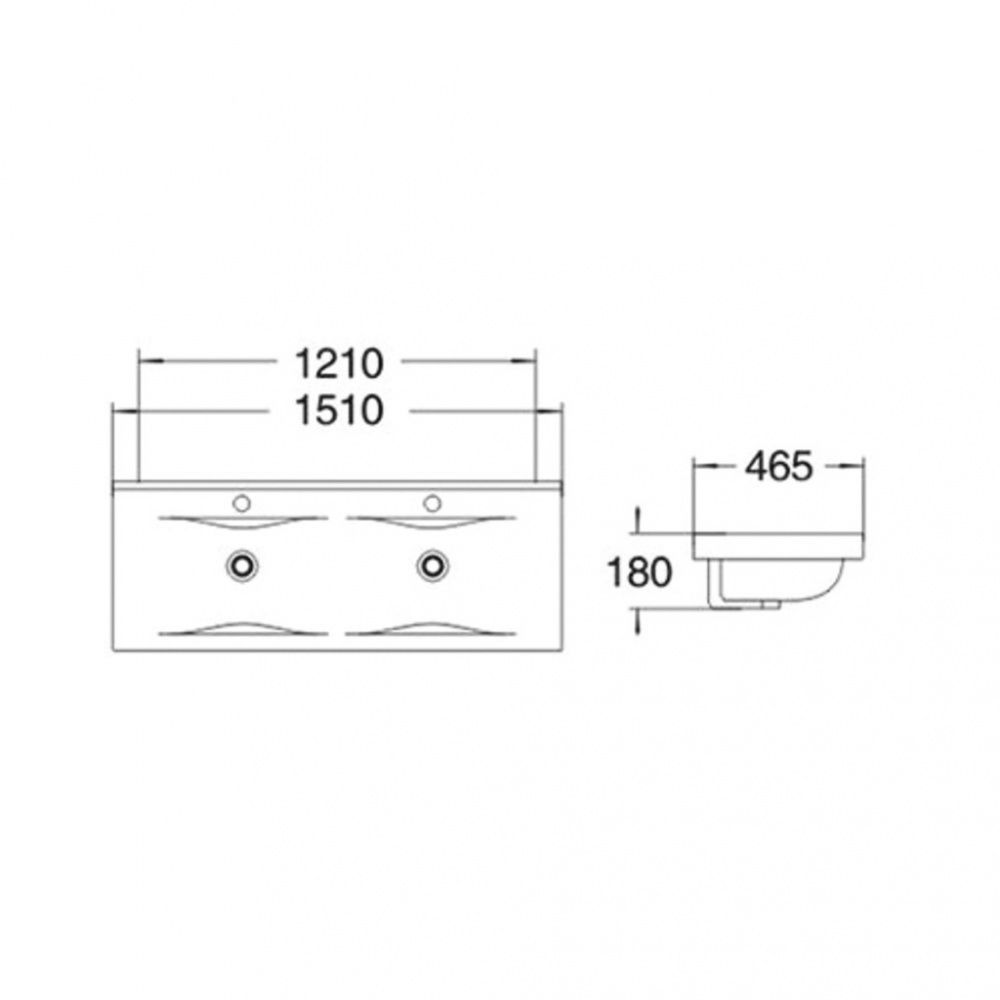 Раковина керамическая, двойная, врезная сверху, с переливом.