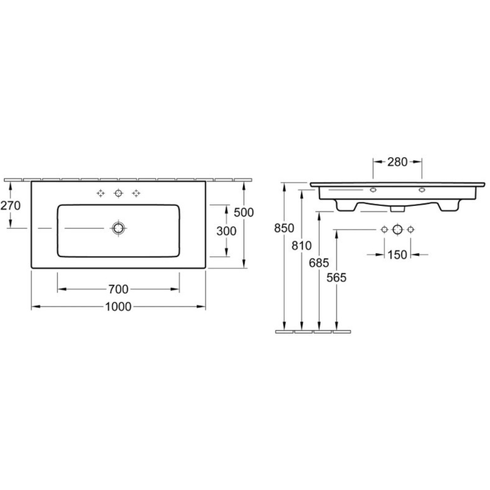 - Раковина, Villeroy&Boch, Verity Line, ширина, мм-1000, глубина, мм-500, высота, мм-165, тип установки-встраиваемый/подвесной, отверстия для смесителя-1 сквозное, 2 промаркированных, перелив-есть, материал-керамика, крепления в комплекте, цвет-альпийский белый