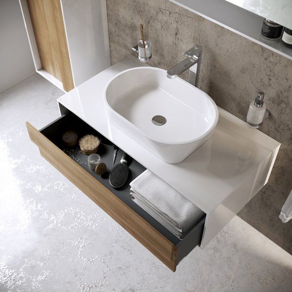 - aксессуары: умывальник для столешницы, мебельный сифон, смеситель для умывальника