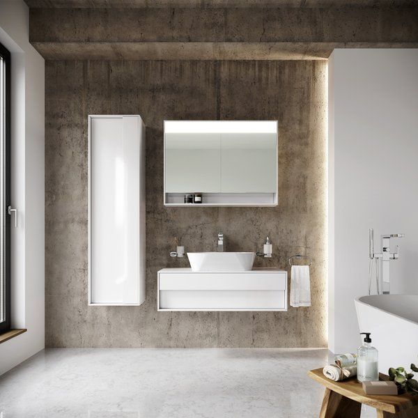 Для полного решения и дизайнерской гармонии ванной комнаты мы рекомендуем комбинировать тумбу для умывальника SD 1000 Step с другими продуктами серии Step (зеркальным шкафчиком MC 1000 Step и высоким шкафом SB 430 Step).