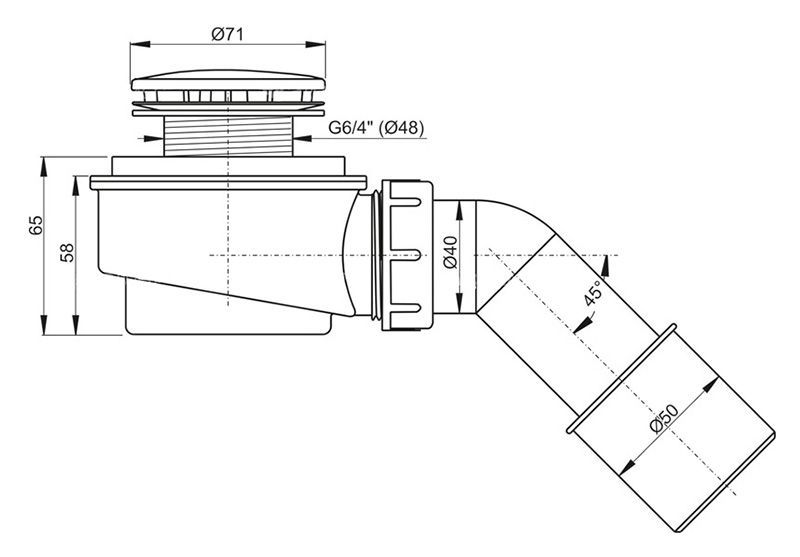 -Для душевых поддонов со сливным отверстием Ø52 мм