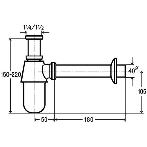 накладка Ø 60 мм, декоративная розетка, выдвижной патрубок 95 мм, сливная труба длиной 200 мм