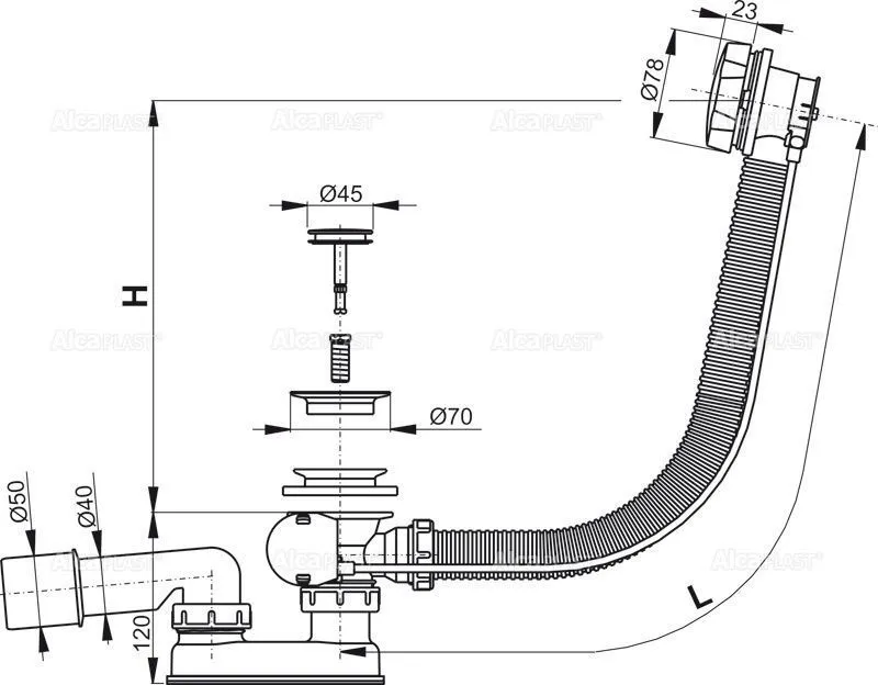 Слив-перелив AlcaPlast A55K-RU-01 для ванны, хром