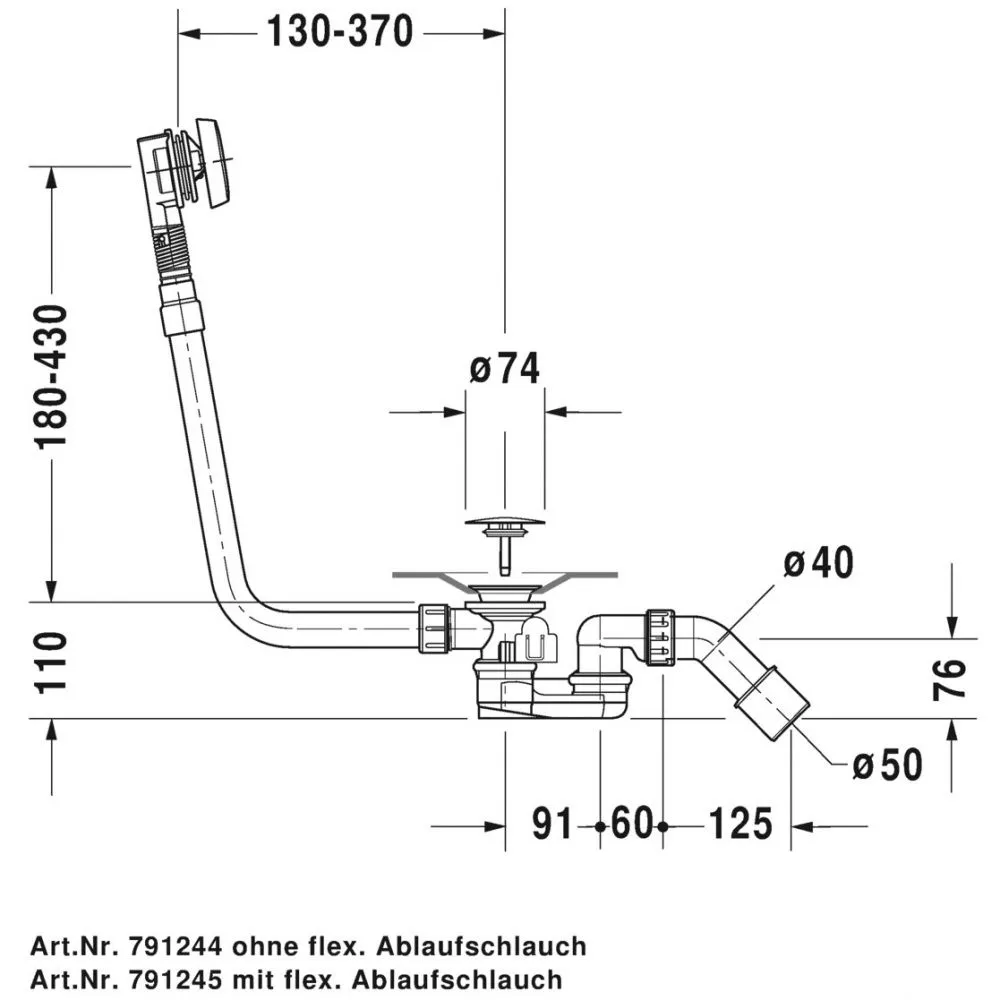 - хром, для ванн с узким бортиком, с гибким выпускным шлангом, диаметр выпуска 52 мм, длина шланга в метал. оплетке 725 мм