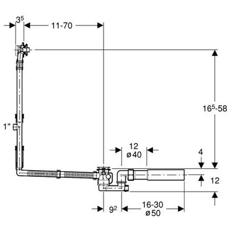 • Для ванн со сливным отверстием ш 52 мм