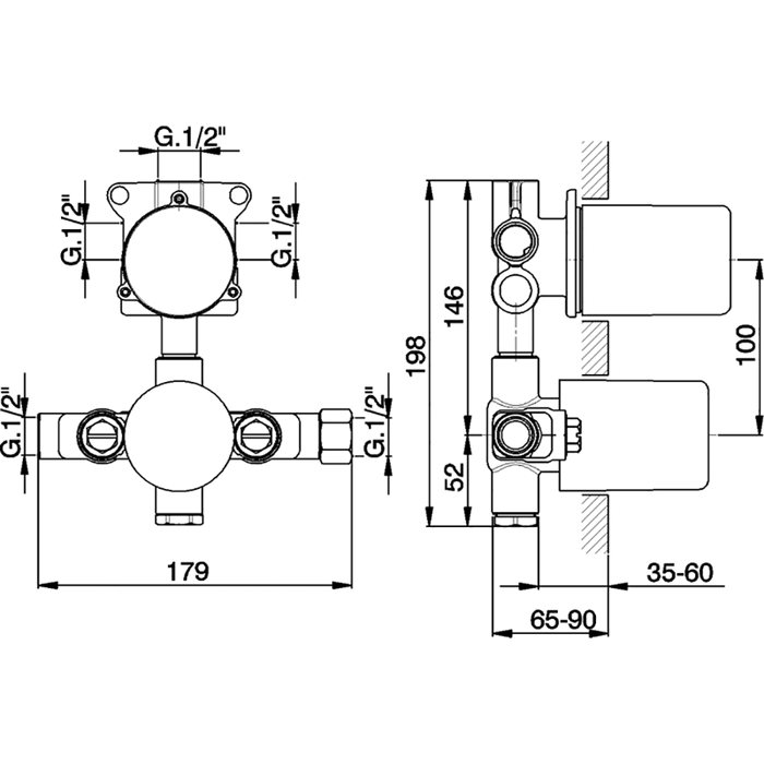 - CISAL Встраиваемая часть термостатического смесителя с переключателем на 2 положения