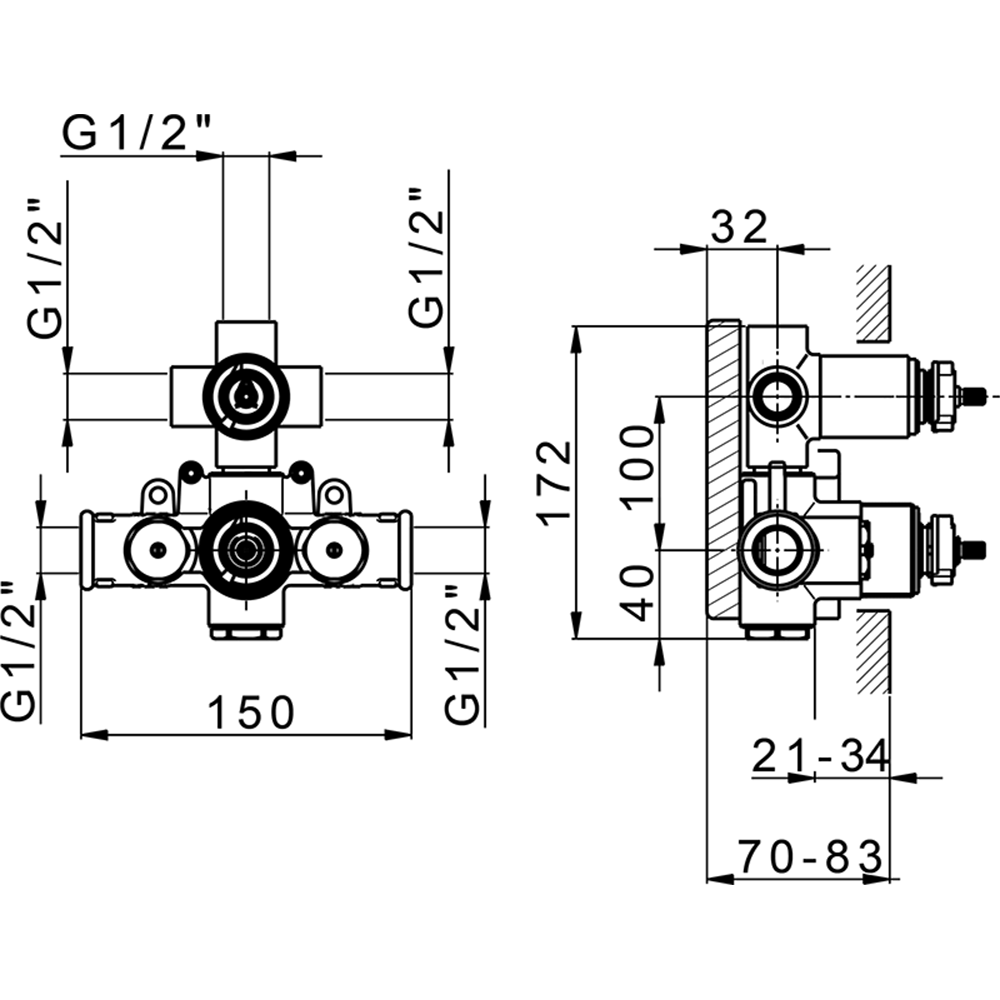 - CISAL Встраиваемая часть термостатического смесителя с переключателем на 3 положения