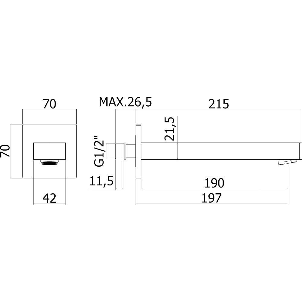 - Излив из стены d.18, длина mm.215 подкл. 1/2" с латунной накладкой d.70, Хром