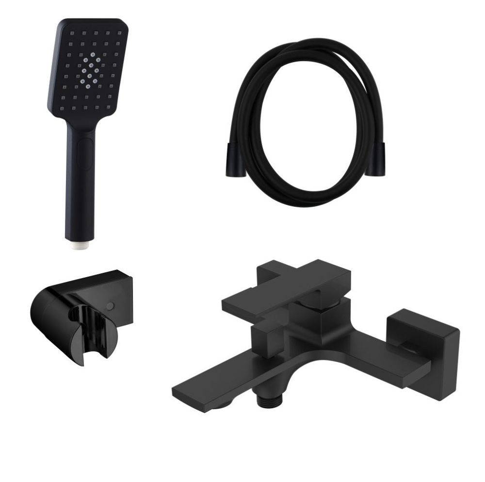 - AQG Bold, однорычажный смеситель для ванны c набором для душа SETN, цвет черный матовый
