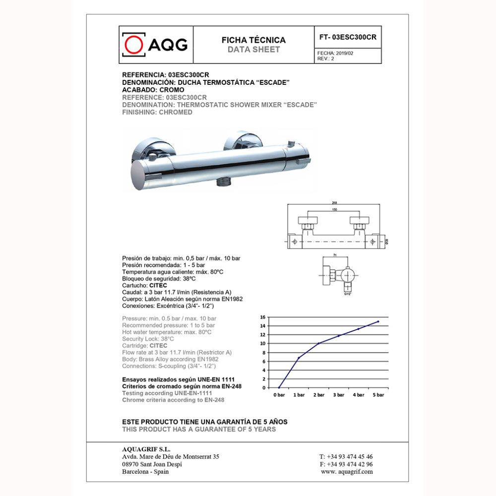 Смеситель AQG Escada 03ESC300CR для ванны, с термостатом, хром