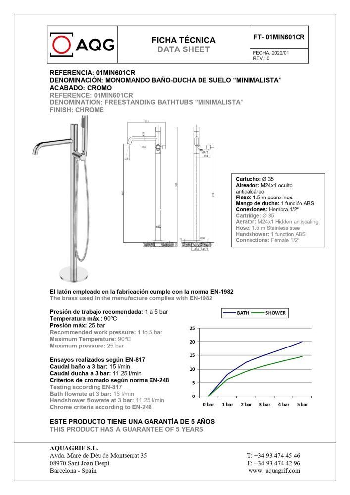 - AQG Min, однорычажный напольный смеситель для ванны с дивертером, цвет хром