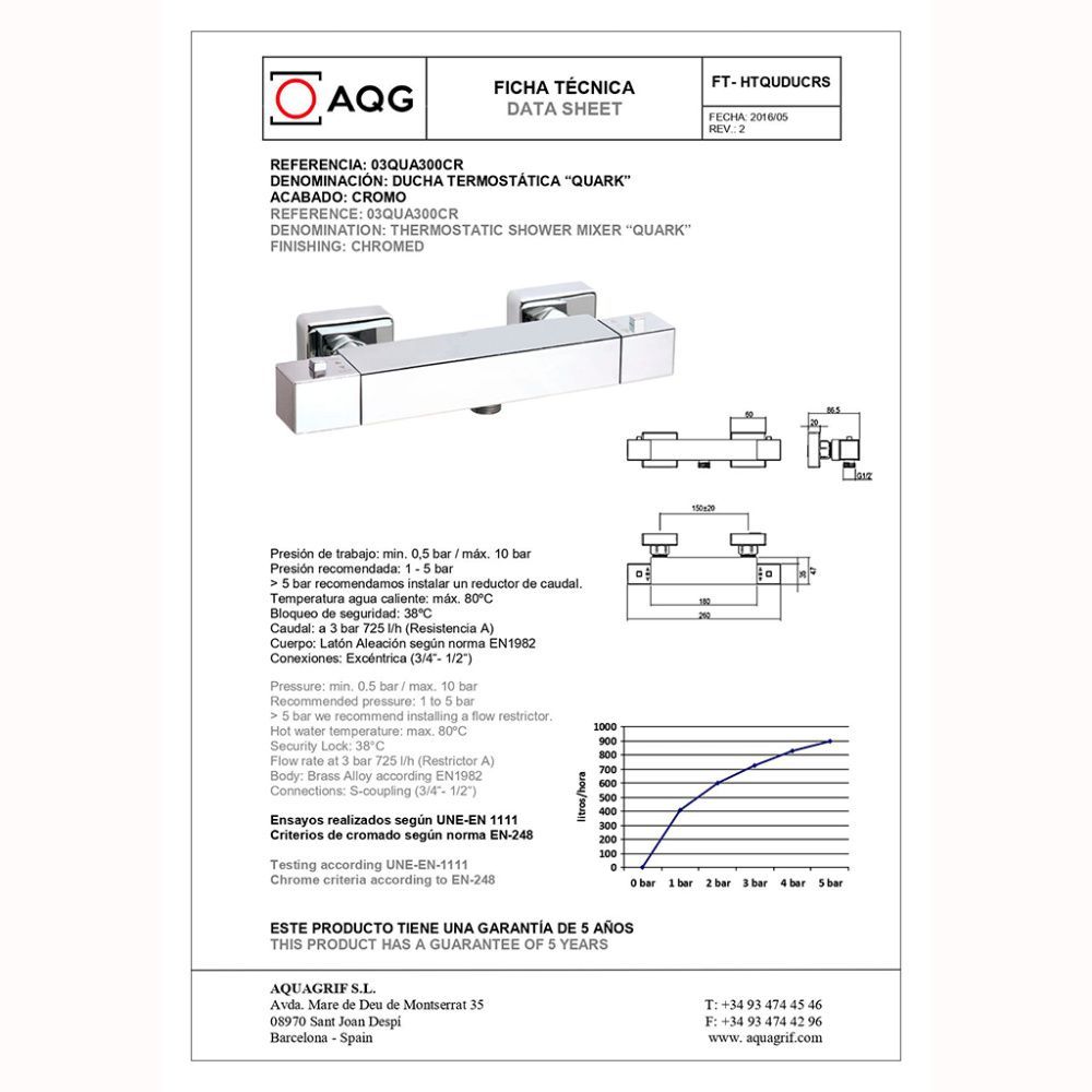 Смеситель AQG Quark 03QUA300CR для ванны, хром