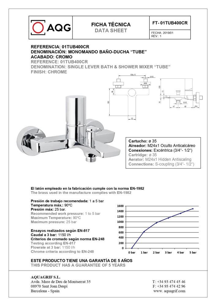 Смеситель AQG Tube 01TUB410CR для ванны, хром