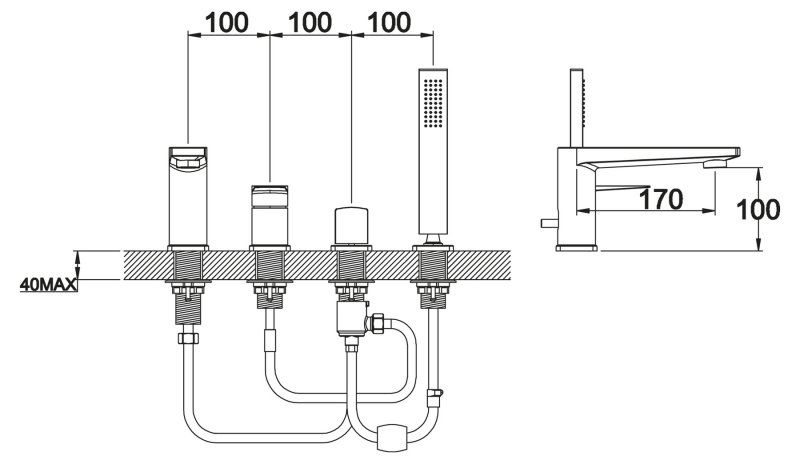 Оснащение: душевая лейка, душевой шланг, переключатель, аэратор