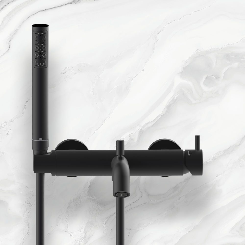 Смеситель для ванны настенный со шлангом 125 см и лейкой Zen, черный матовый (073)