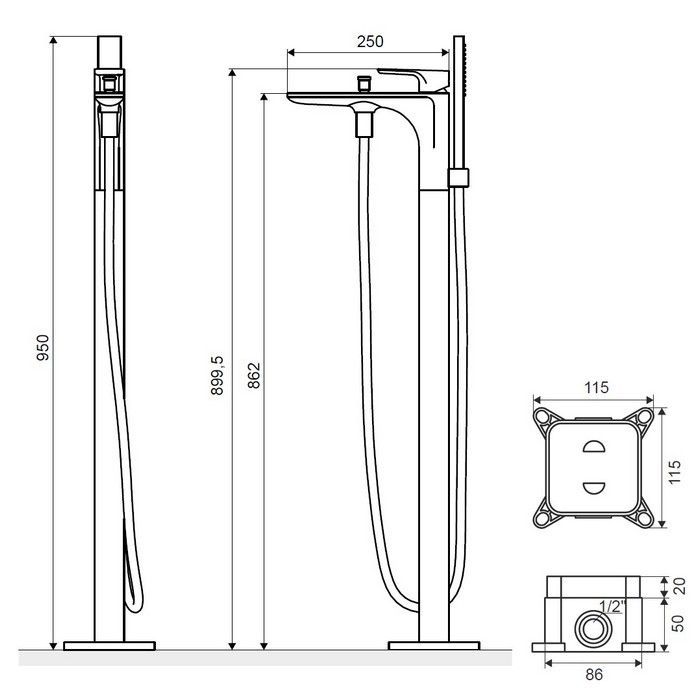 - напольный смеситель для ванны;