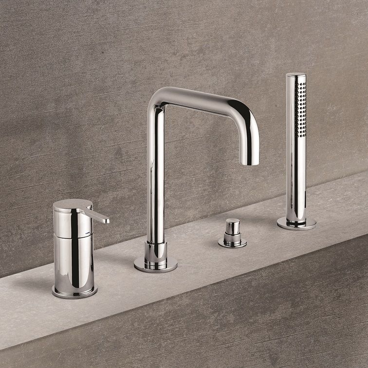 85120/CR Emmevi Filobrass, комплект однорычажного (со стержнем) смесителя на борт ванны на 4 отверстия с изливом, цвет хром