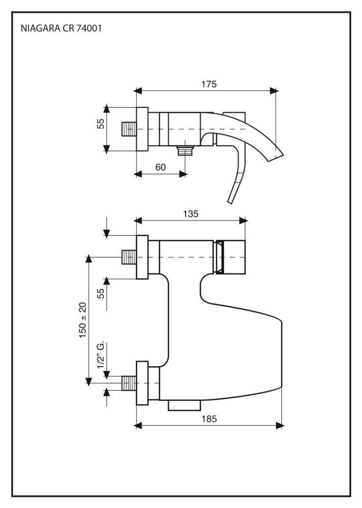 74001/CR Emmevi Niagara, однорычажный смеситель для ванны с широким изливом, без набора для душа, цвет хром