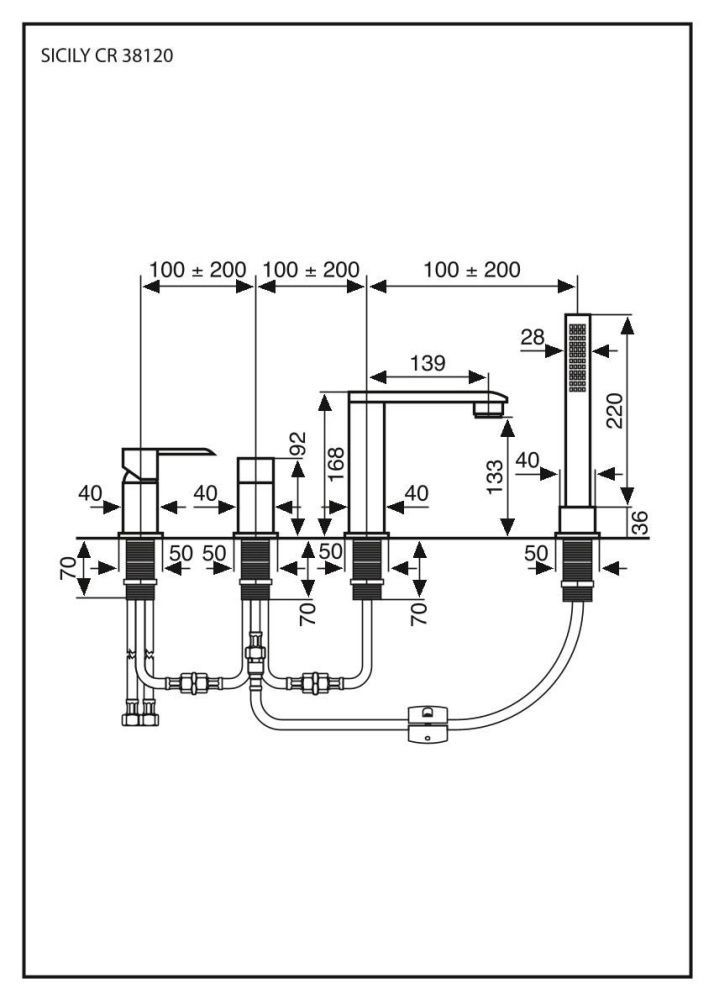 38120/OR Emmevi Sicily, комплект однорычажного смесителя на борт ванны на 4 отверстия, цвет золото