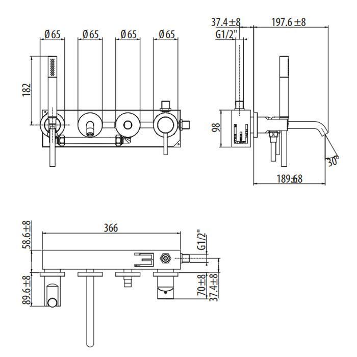 Смеситель Gattoni Circle Two 9105/91BO для ванны, белый матовый