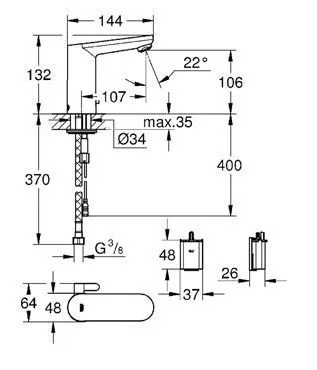 - Инфракрасная электроника для раковины 1/2" со смешиванием и с регулируемым ограничителем температуры