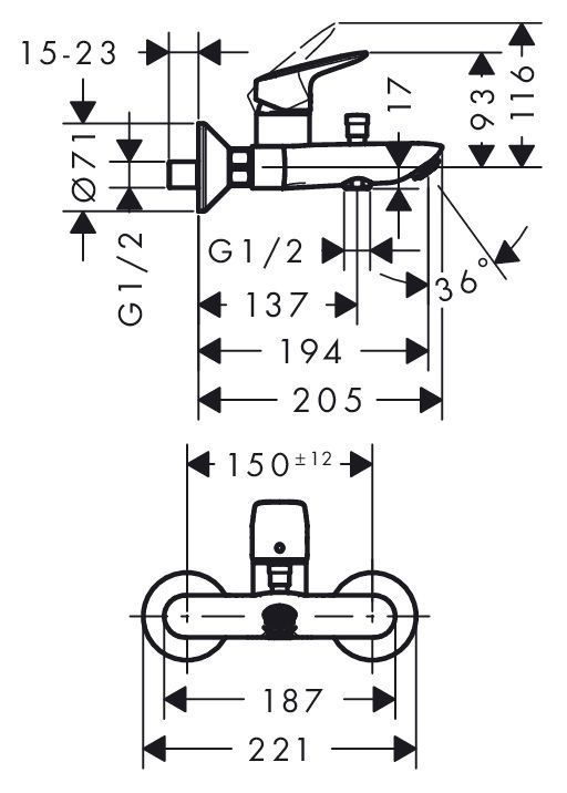 - Штихмас (монтажный размер) 150±12 мм.