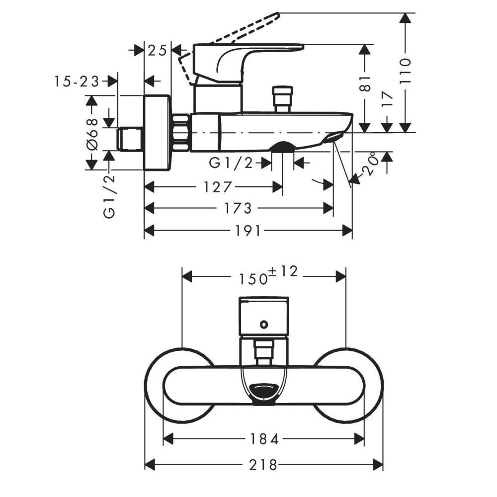 • расход воды изливом на ванны при 3 барах: 20,4 л/мин