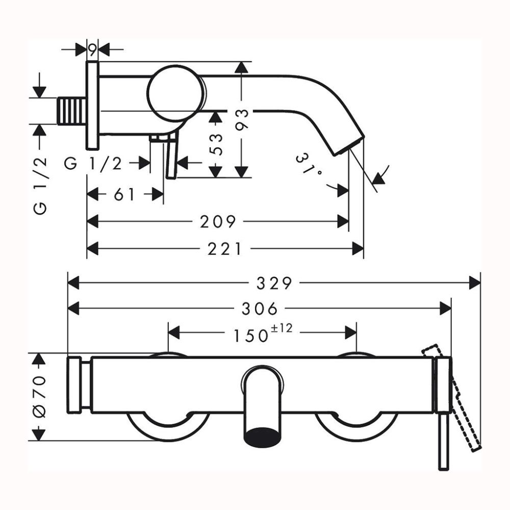 Смеситель Hansgrohe Tecturis S 73422000 для ванны, хром
