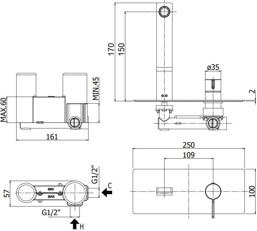 Смеситель Paffoni Rock RO104ST для раковины, сталь