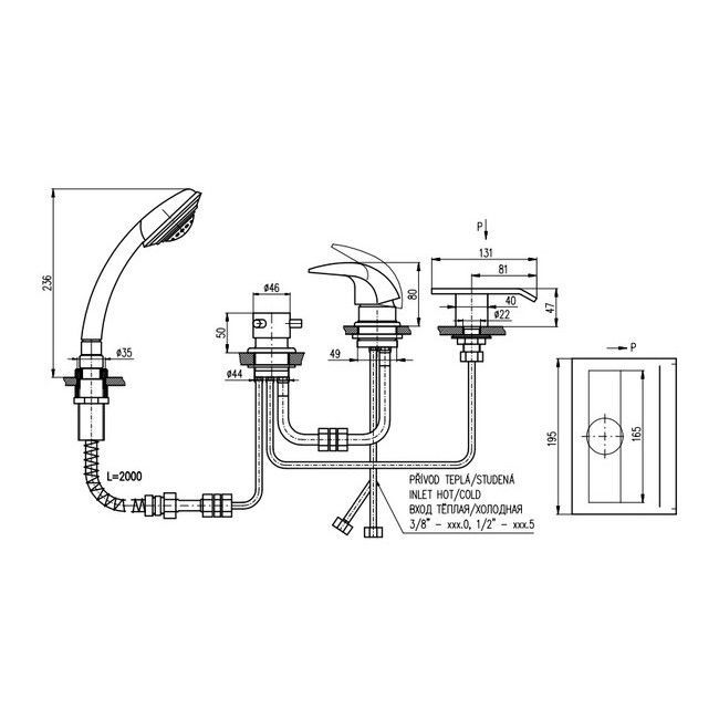 - Излив монтируется в ванну