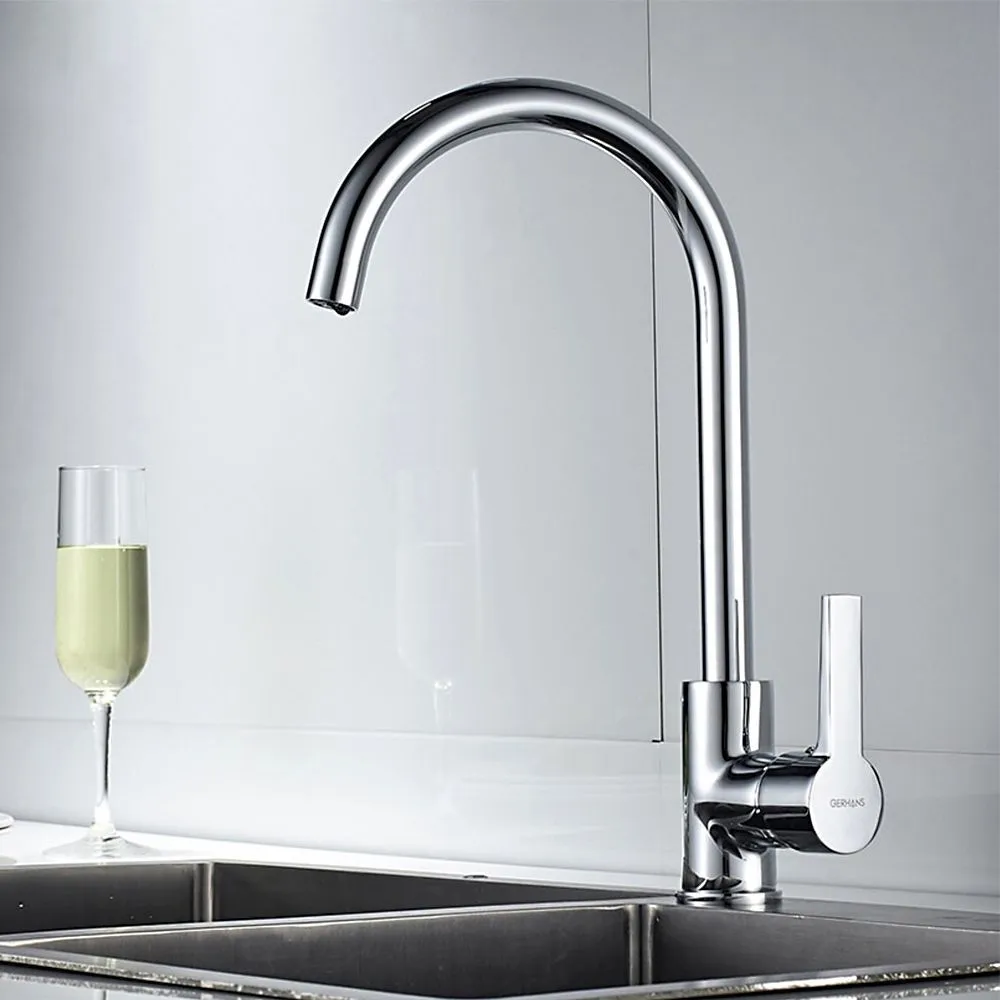 Смеситель Gerhans K14084 для кухонной мойки. Изготовлен из высококачественной первичной латуни категории А. Полировка и последующая гальванизация смесителя делает его поверхность максимально крепкой, защищает от воздействий внешней среды и механических повреждений.